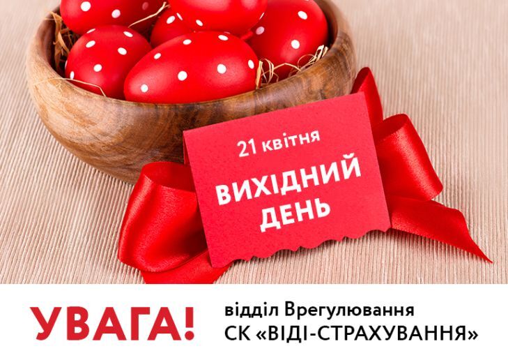 Звертаємо Вашу увагу на графік роботи відділу врегулювання страхових випадків СК "ВІДІ-СТРАХУВАННЯ" в період свят!